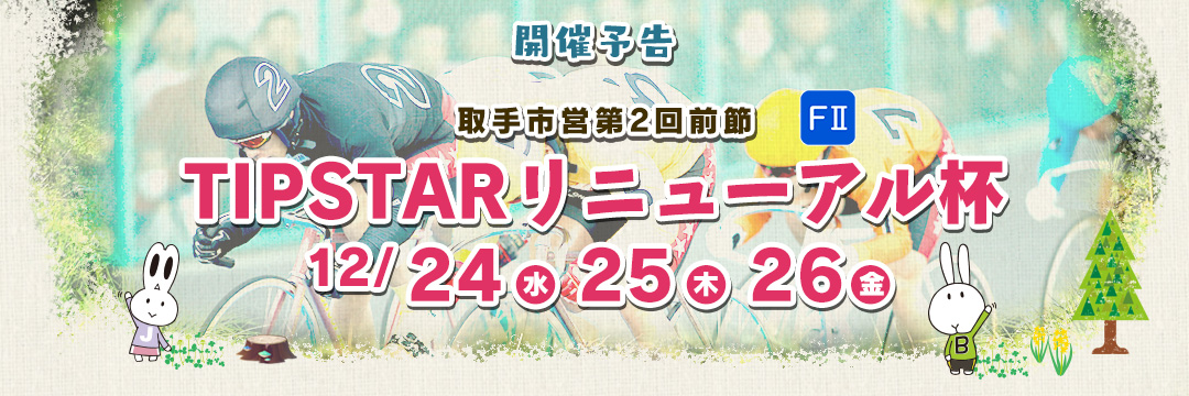 メインスタンド未確定車券ガラポン抽選会・第1特別観覧席早期入場くじを実施します! (TIPSTARリニューアル杯FⅡ12月24日~26日)