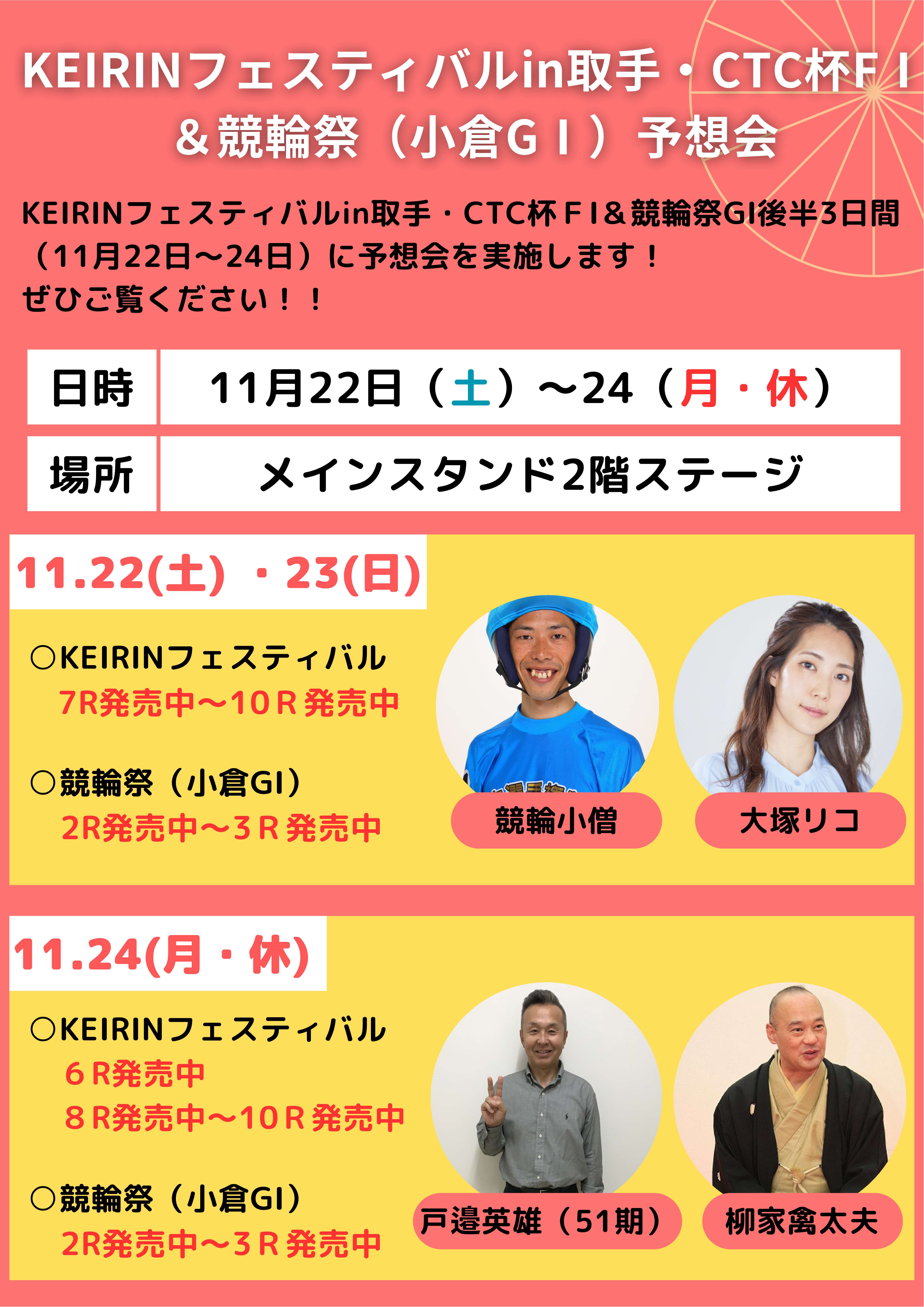 ・取手競輪FⅠ KEIRINフェスティバルin取手 11月22日(土)〜24日(月・休)