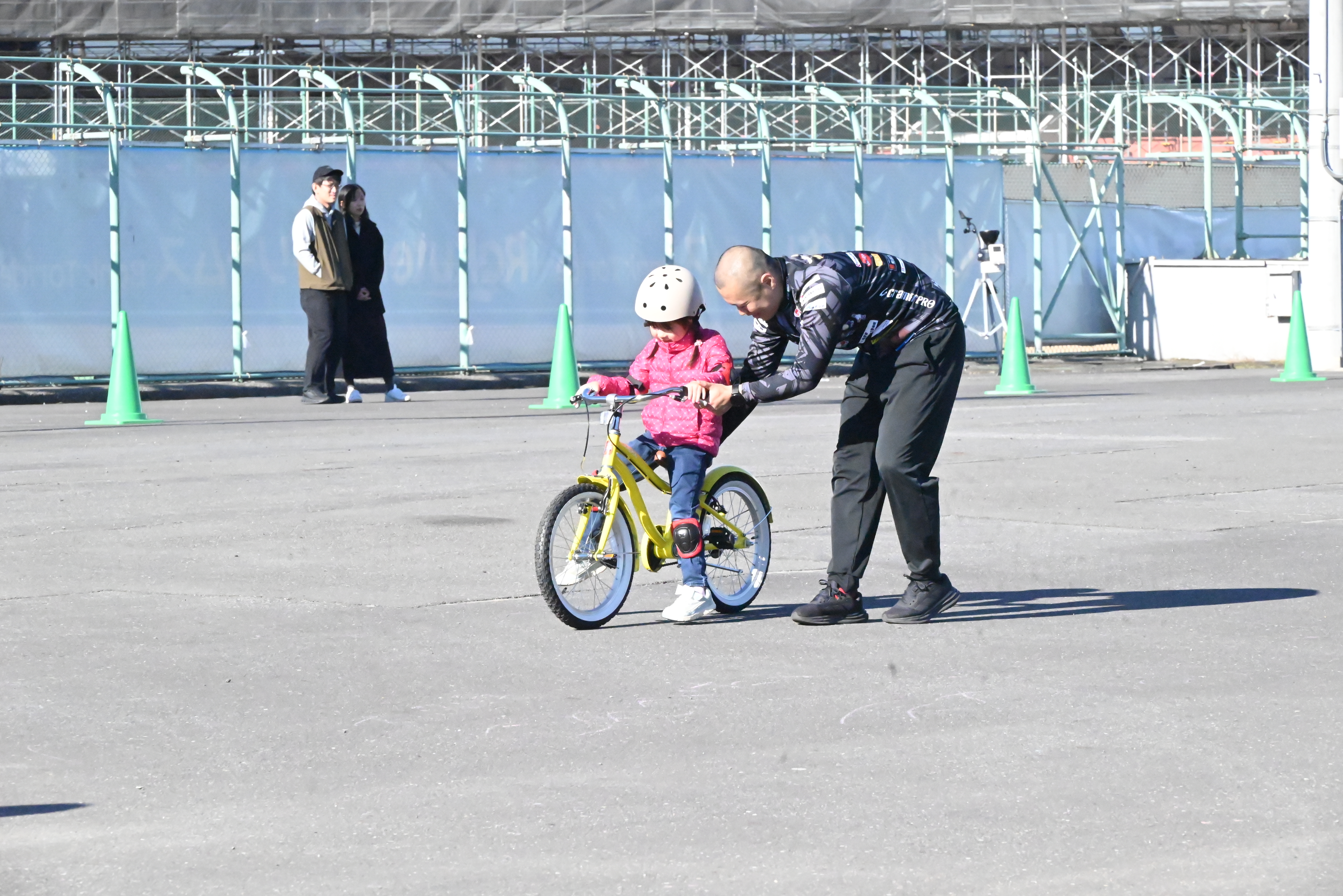 プロの競輪選手と、取手第一高校の自転車競技部の生徒が丁寧に乗り方をレクチャーし、多くの子供たちが自転車に乗れるようになりました!