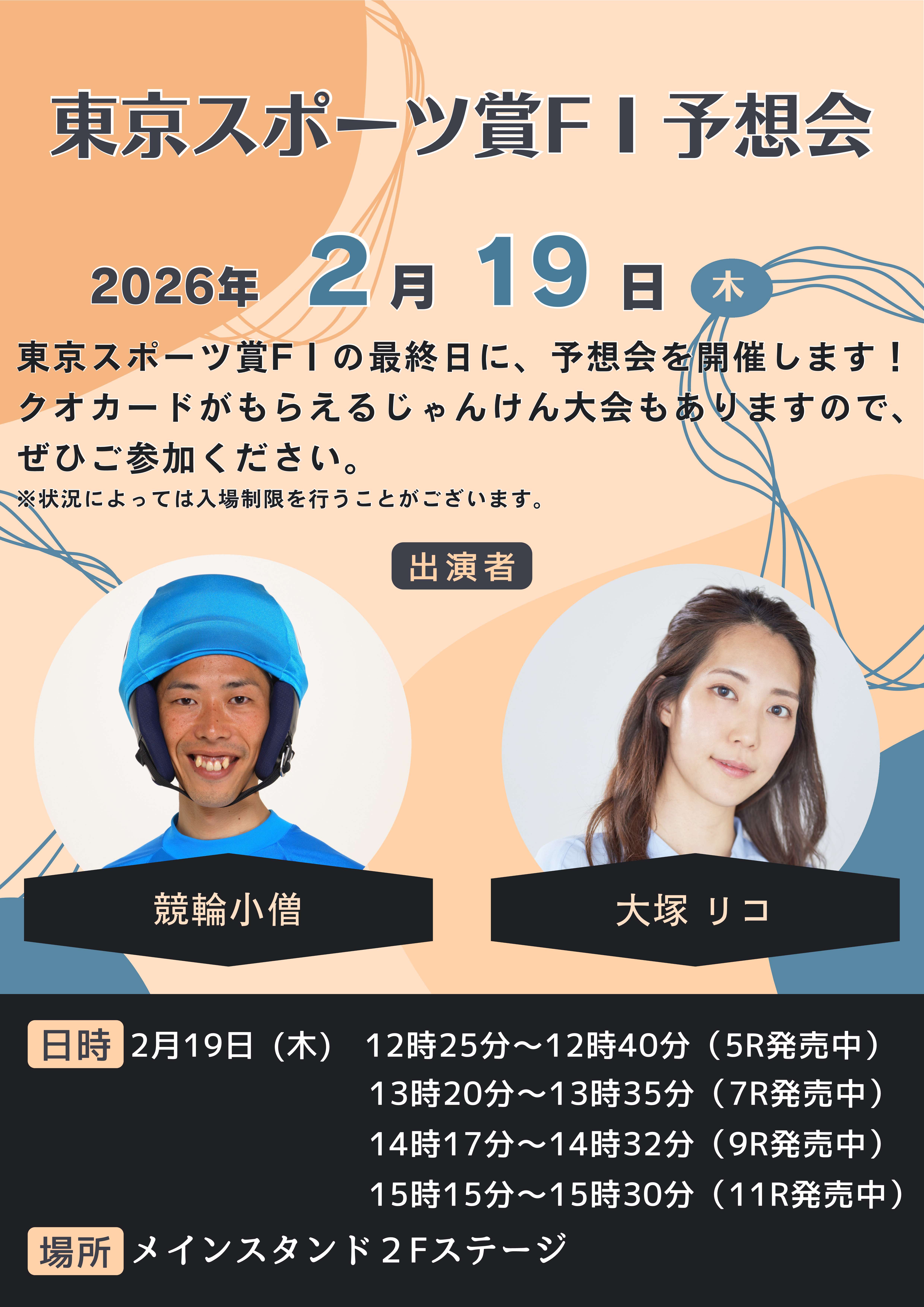 「東京スポーツ賞」FⅠの最終日(2/19)に、レース予想会を開催します!