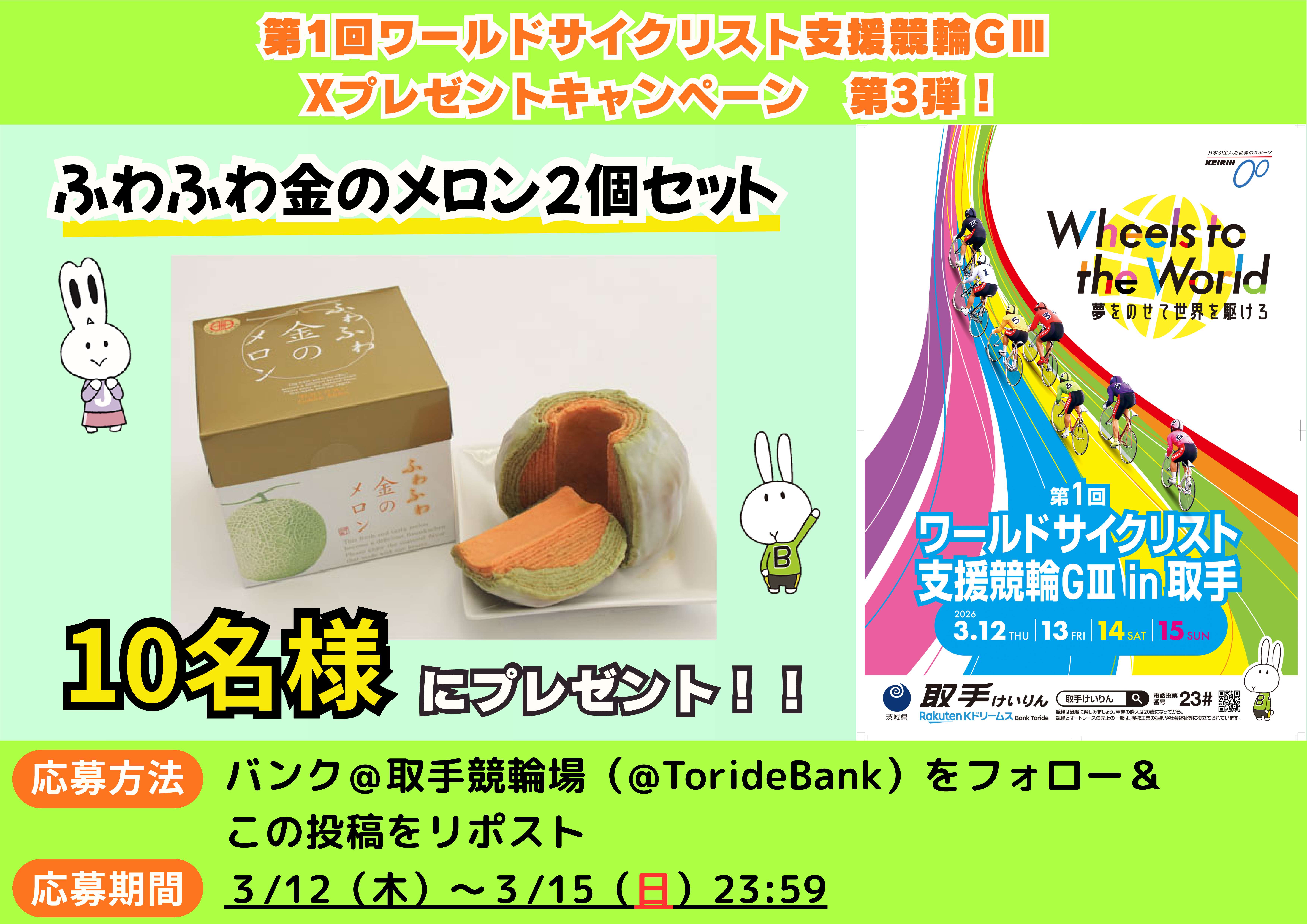 Xより、取手競輪場公式アカウント(@Toridebank)のフォロー&投稿のリポストで応募ができますのでぜひご参加ください!
