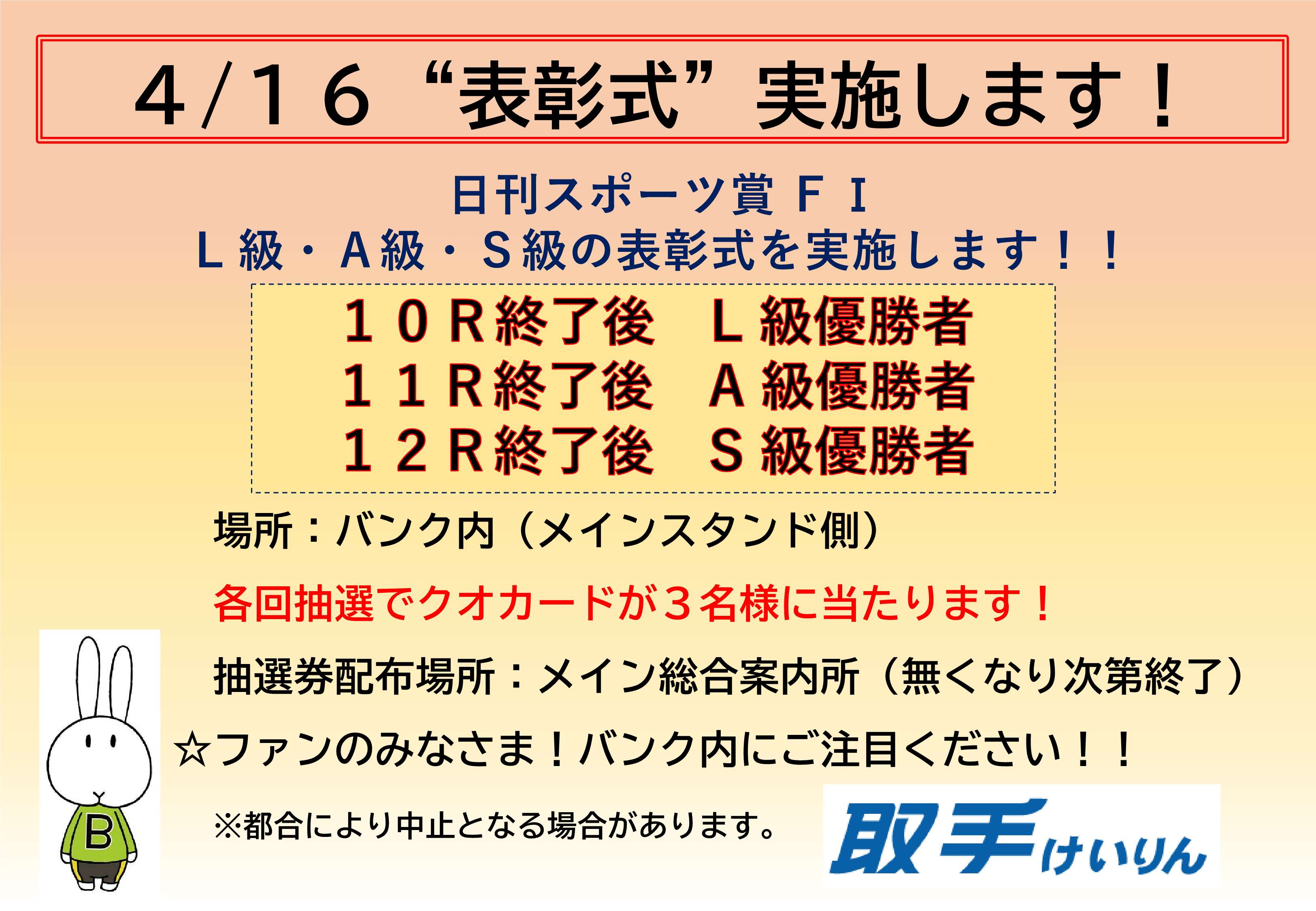 「日刊スポーツ賞」FI(4月14日~16日) 表彰式の実施について